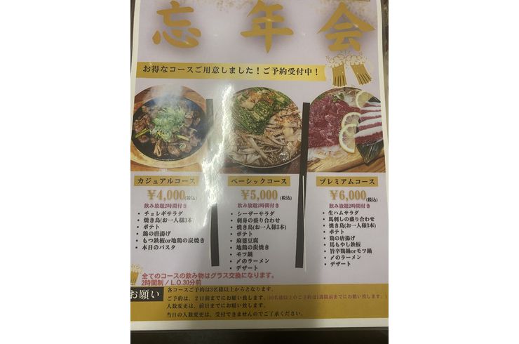 居酒屋りんどう自慢の焼き鳥以外に、お刺身やサラダ、お酒によく合う単品料理が10品以上付いたボリュームあるコースメニューは充実感満載です。さらに新鮮でプリプリのもつとたっぷりの野菜が入ったもつ鍋が付いたコースやもっちりとした濃厚な馬刺しが入るコースもあり、宴会を一層美味しく盛り上げます。2時間の飲み放題と共におくつろぎいただける宴会コースをご予約ください。お酒によく合う美味い料理と美味しいお酒を用意して皆様をお待ちしています。